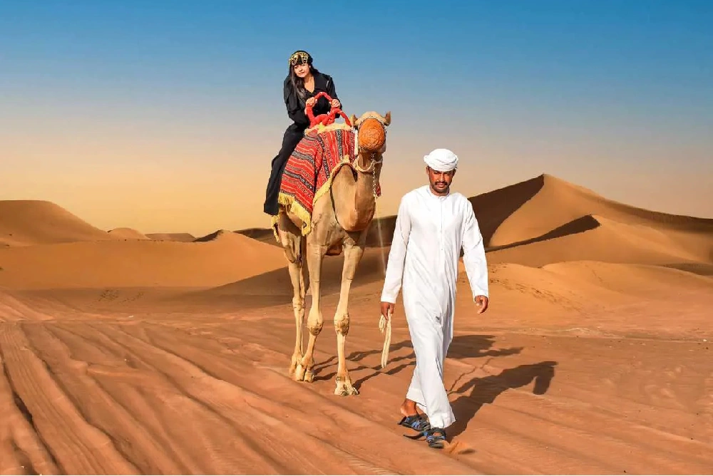 Zoom across the golden dunes, experiencing the exhilarating sensation of freedom and exploration. Take breaks along the way to indulge in sandboarding and capture breathtaking moments at the desert photo point. For those seeking an extra touch of authenticity, camel rides and falcon photos are available as optional add-ons, allowing you to immerse yourself fully in the desert experience.
